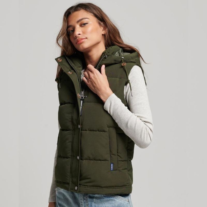 everest hooded puffer gilet para mujer superdry, La Prenda Ideal Para Combinar Con Tus Looks