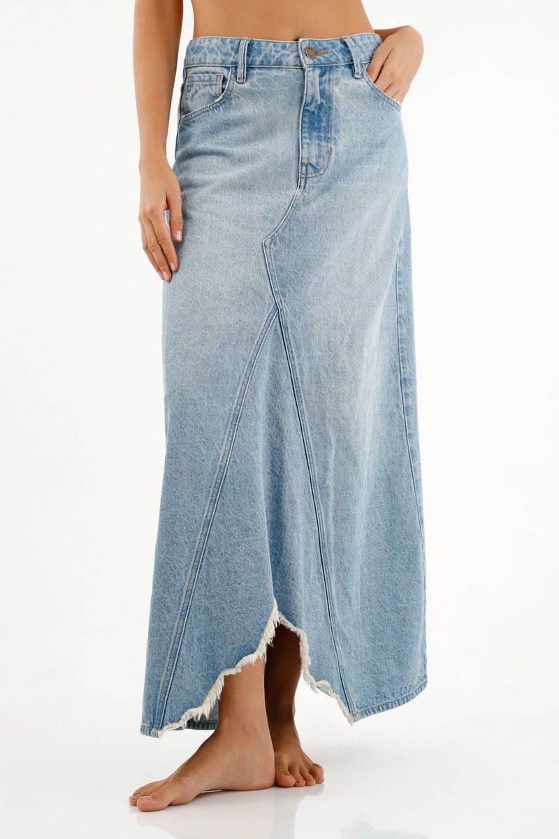 RopaMujerFaldasFalda azul con ruedo asimétrico para mujer