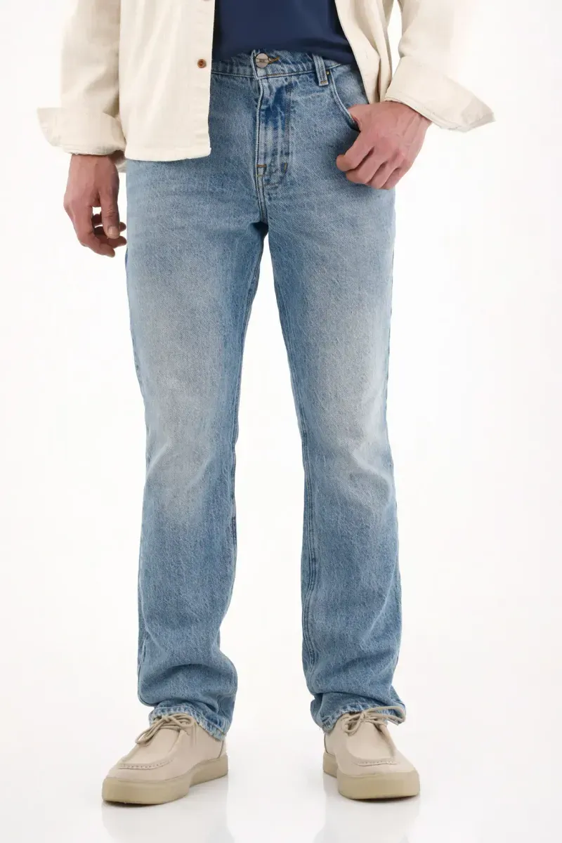Confeccionado en denim resistente y cómodo, cuenta con cinco bolsillos funcionales, ajuste con cierre y botón, y una caída recta que equilibra confort y estilo.