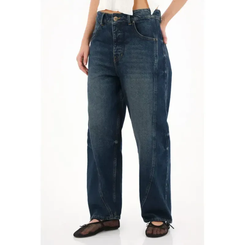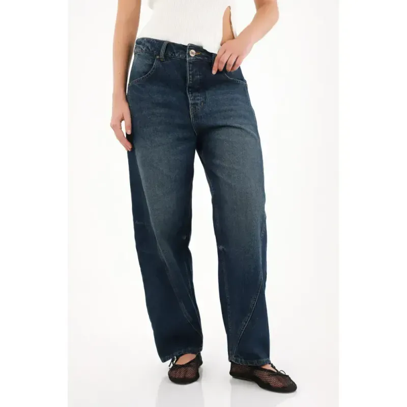 Una silueta amplia y curva que se inspira en la forma de una herradura, ajustada en la cintura y el tiro, pero con un volumen generoso que se abre en la pierna para luego volver a cerrarse sutilmente en el bajo. Este diseño crea un efecto moderno, perfecto para quienes buscan un resultado audaz que se roba las miradas.