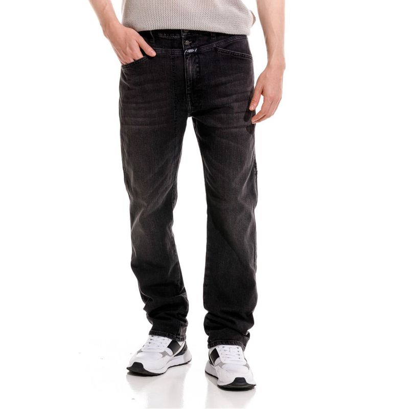 Jean brand X masculino tiro medio con bolsillos en X en delantero. Efecto lavado negro medio y oscuro. Fit regular. Cierre frontal con cremallera y botón metálico.