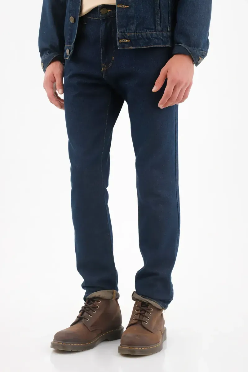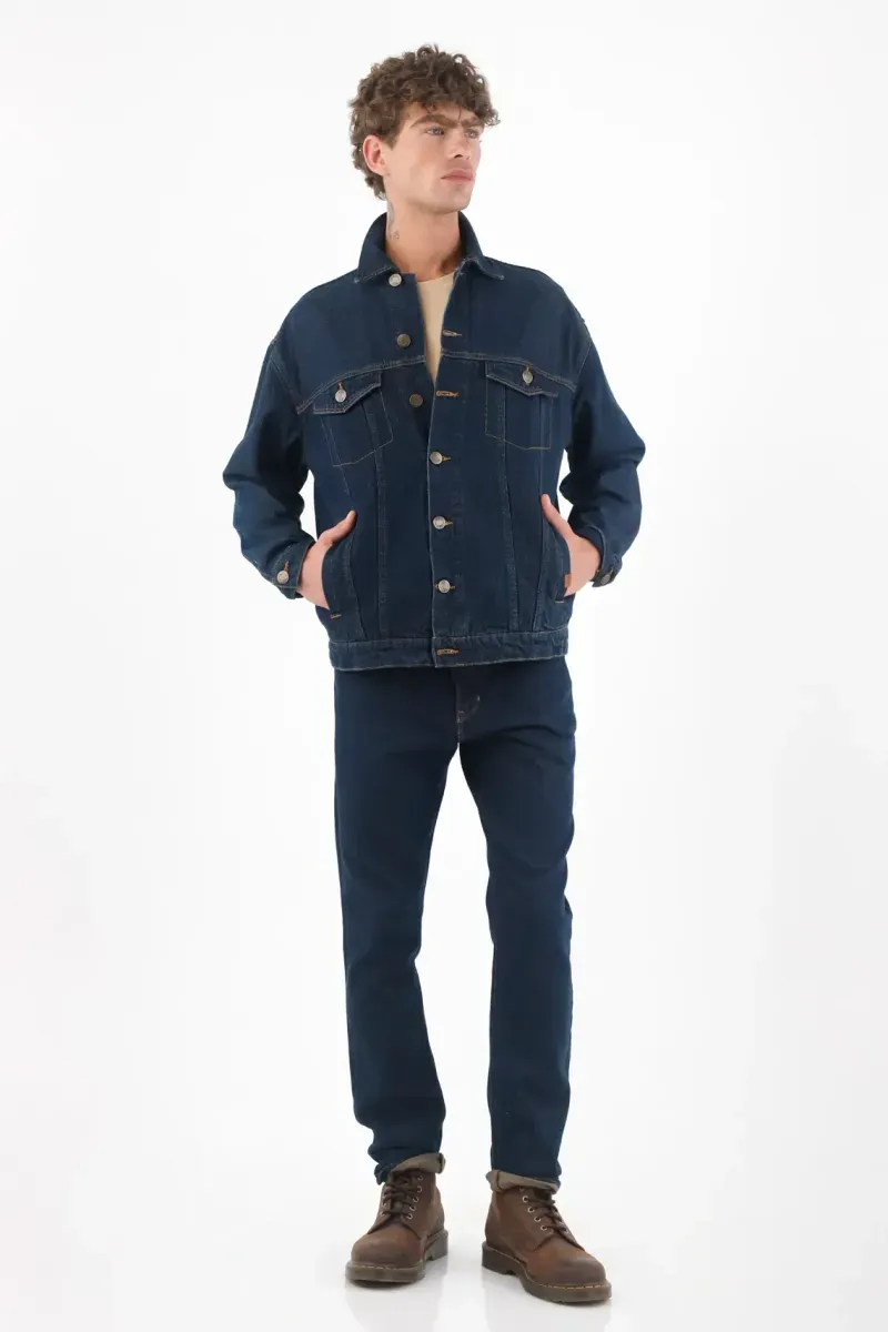 Este jean hombre azul oscuro apuesta por un lavado uniforme que ordena la silueta y funciona del estudio a la noche. El denim 100% algodón ofrece un tacto auténtico y firme, perfecto para un look jeans street limpio. El corte recto cae impecable desde la cadera, estiliza y mantiene un aire relajado. La pretina con pasadores define la cintura y las costuras en contraste suman carácter sin exceso; si quieres un guiño urbano, prueba una leve vuelta en el bajo para resaltar el índigo profundo.