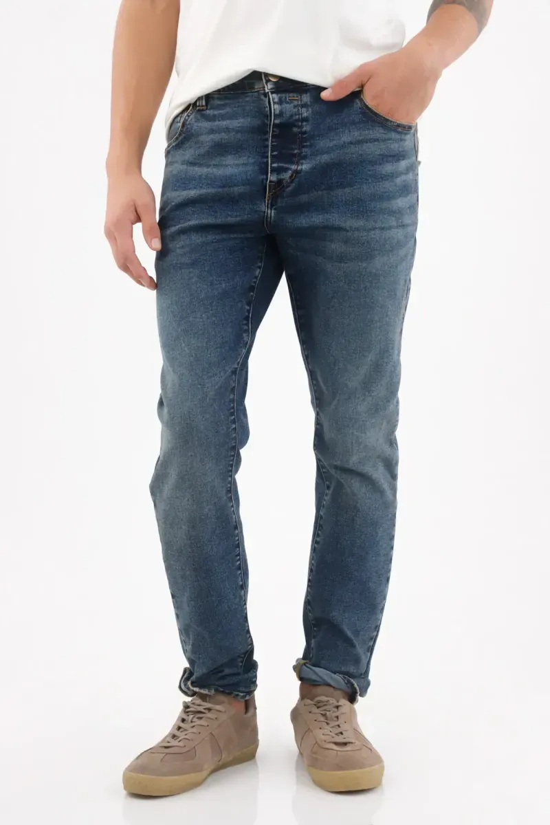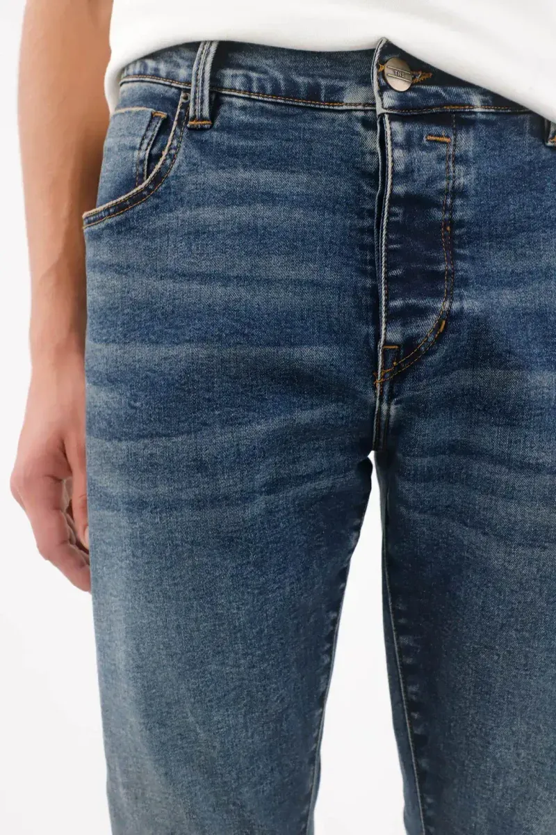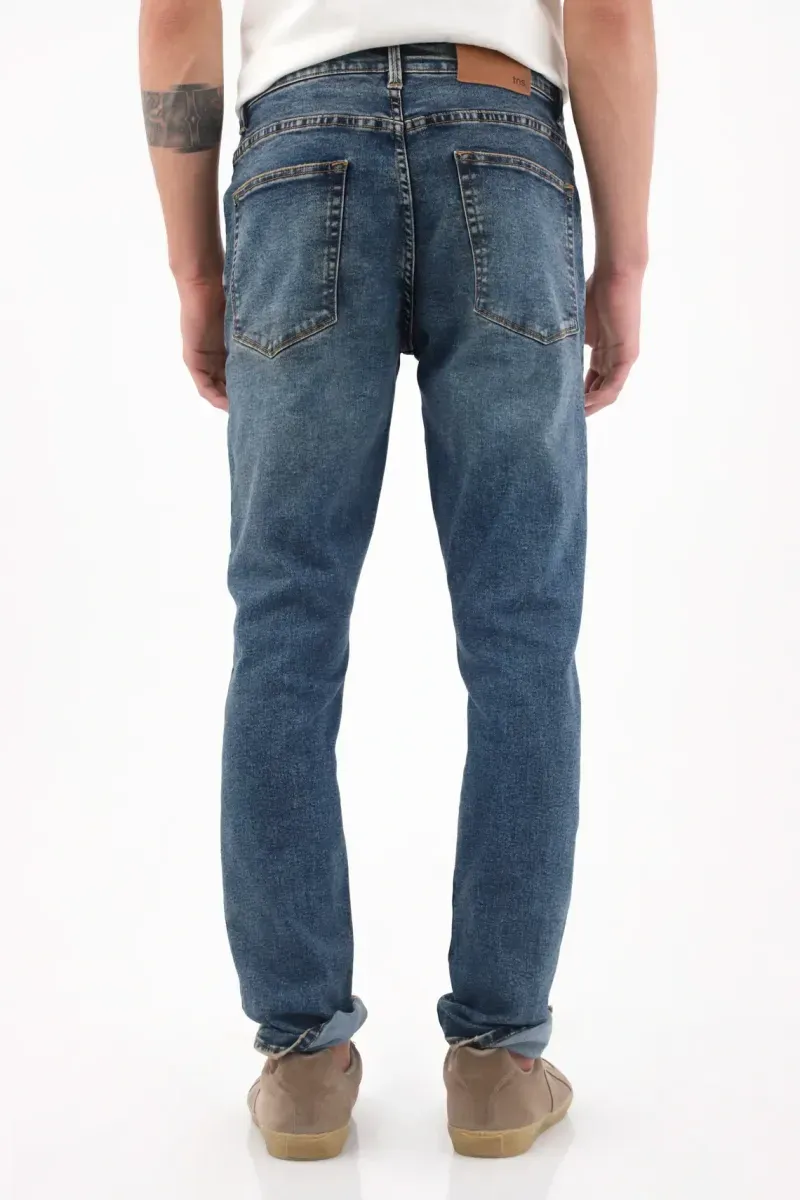 Este jean para hombre de TNS apuesta por un azul índigo con desvanecidos y bigotes suaves que suman profundidad urbana. La tela combina 68% algodón, 30% poliéster y 2% elastano: estructura con una flexibilidad sutil para moverte cómodo todo el día. El corte ajustado define la pierna y termina en botapié estrecho para una línea limpia. Las costuras en tono caramelo remarcan el contorno y la pretina con pasadores mantiene el look clásico y ordenado.