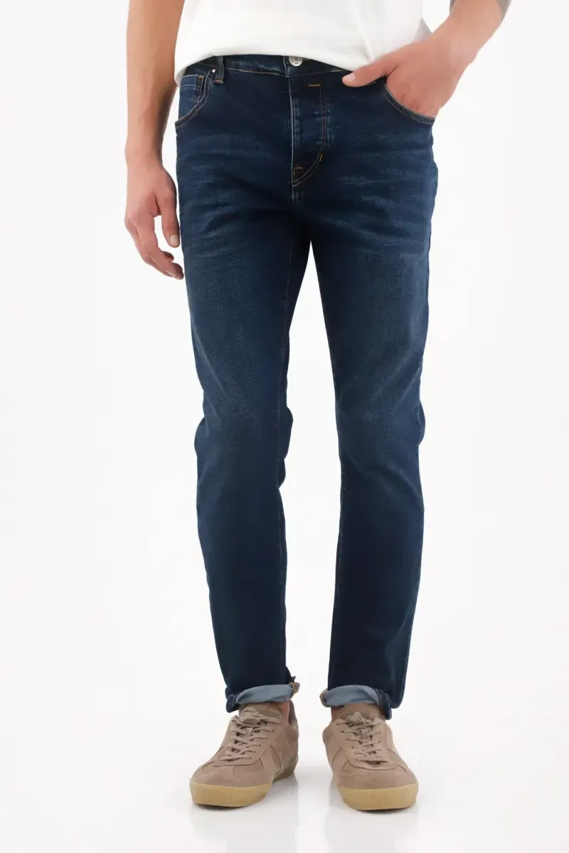 Índigo profundo que dibuja la silueta. Este jean skinny para hombre apuesta por un azul índigo oscuro con lavado suave que mantiene la vibra limpia y urbana. Las costuras en contraste subrayan las líneas y aportan carácter sin exceso. La pretina con pasadores ordena la cintura y acompaña la pierna estrecha para un perfil definido. La mezcla de 68% algodón, 30% poliéster y 2% elastano se siente actual y cómoda para el movimiento de todos los días. Ideal si buscas un jean skinny hombre en índigo que funcione de mañana a noche.