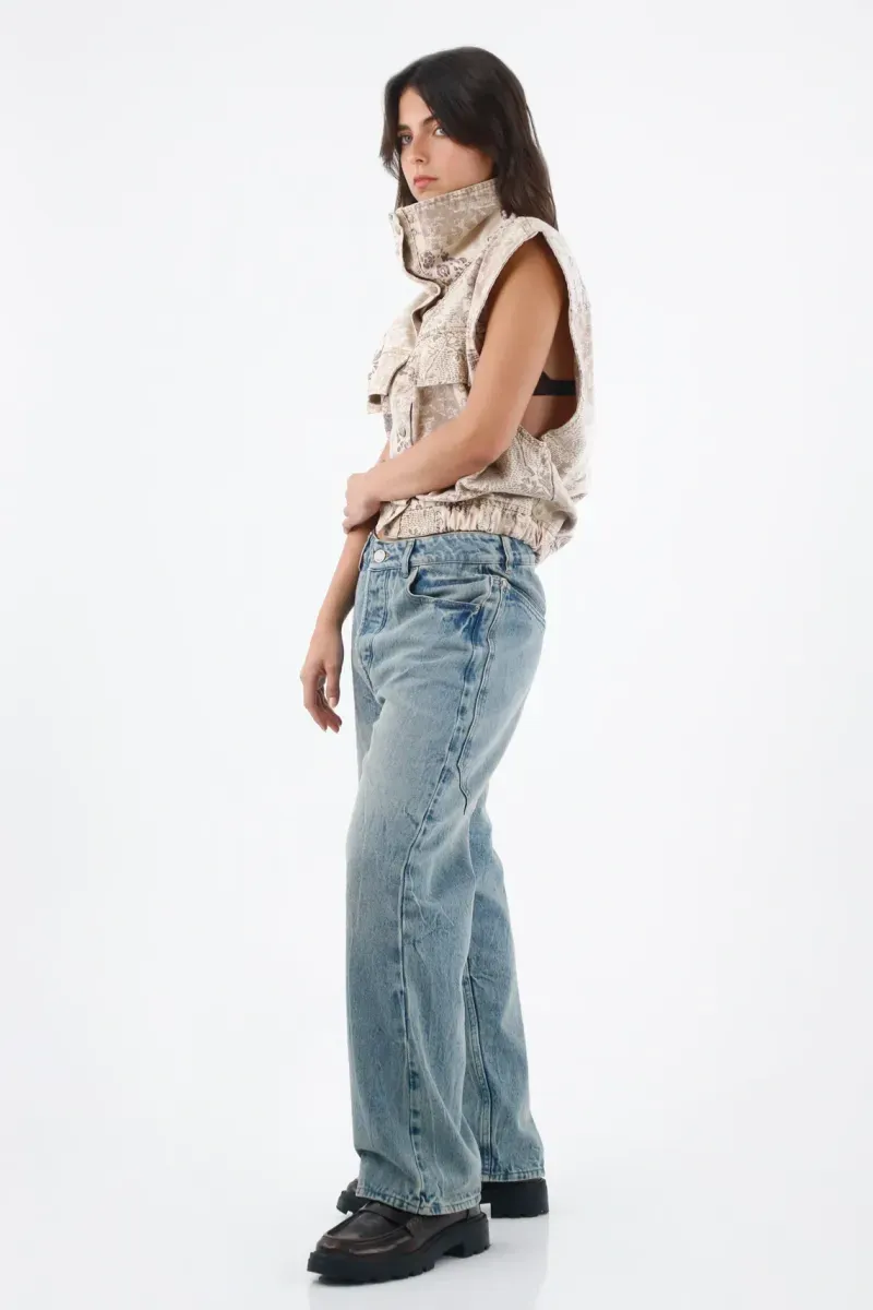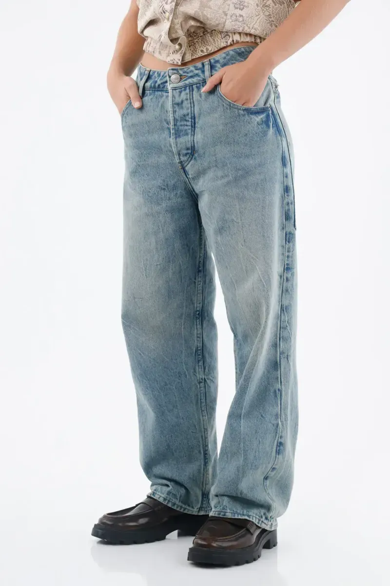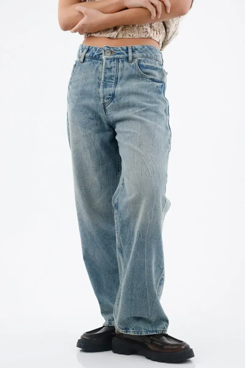 Recto, pero con libertad extra. Este jean TNS toma la silueta clásica y la suelta: pierna amplia con caída natural y un largo que roza el suelo para ese gesto urbano que llama la atención. El denim 100% algodón luce un lavado azul con aire vintage que aporta textura auténtica y actitud relajada. La pretina con pasadores y el botón metálico enmarcan la cintura con limpieza, mientras las costuras en tono natural realzan el carácter del tejido. Bolsillos delanteros curvos completan el look práctico del jean recto mujer.