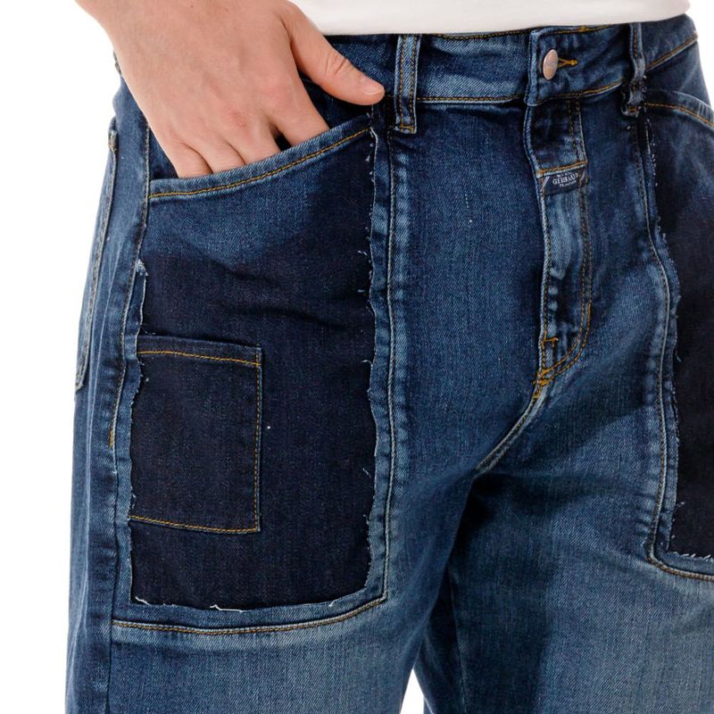 Jean tipo cargo. Efecto lavado azul medio y reservas. Fit regular. Cierre frontal con cremallera y botón metálico.
