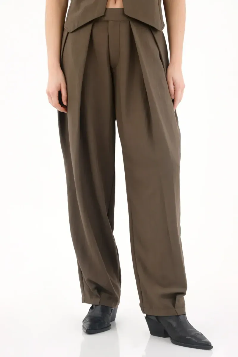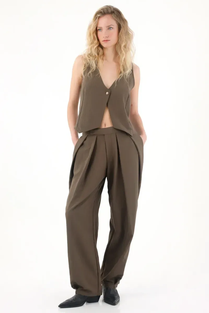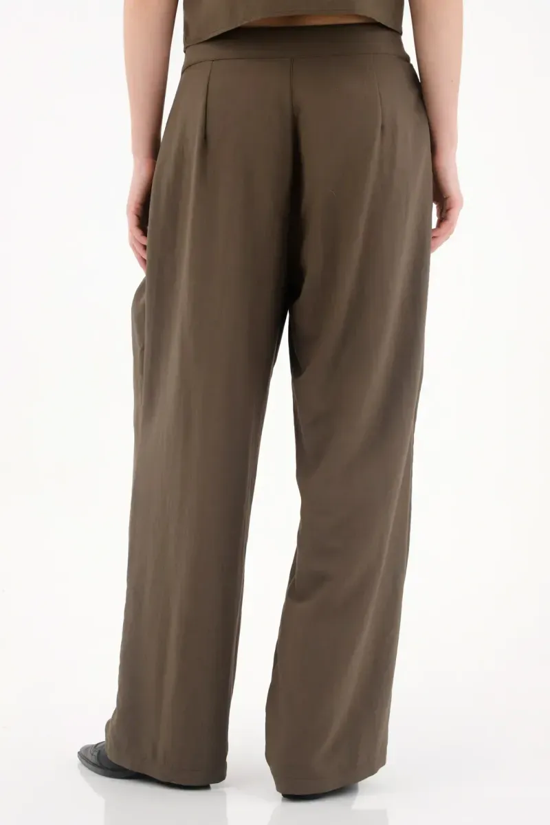 Este pantalón para mujer está diseñado con una silueta de bota ancha que aporta un estilo sofisticado y fluido. Los prenses en la parte delantera refuerzan el diseño clásico y estructurado, mientras que la pretina con botones añade un toque de originalidad y funcionalidad. La tela se ajusta perfectamente a la figura y brinda comodidad con movimiento durante todo el día.