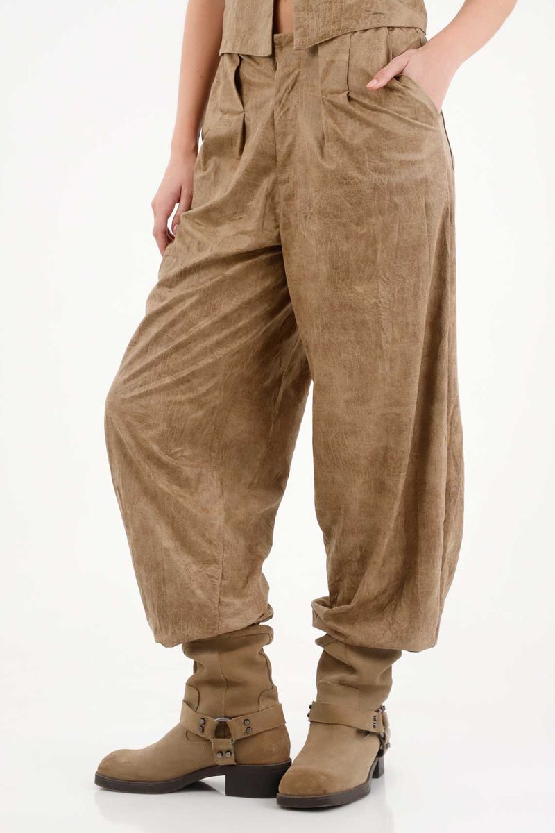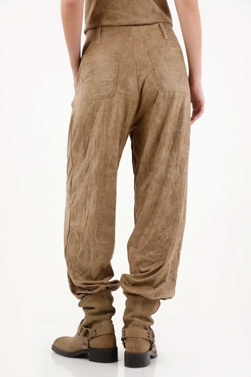 Cintura lisa, prenses en delantero y bota con elástico que asegura comodidad sin perder forma. Confeccionado en PU liviano que simula la textura del cuero real, perfecto para llevarlo del día a la noche.