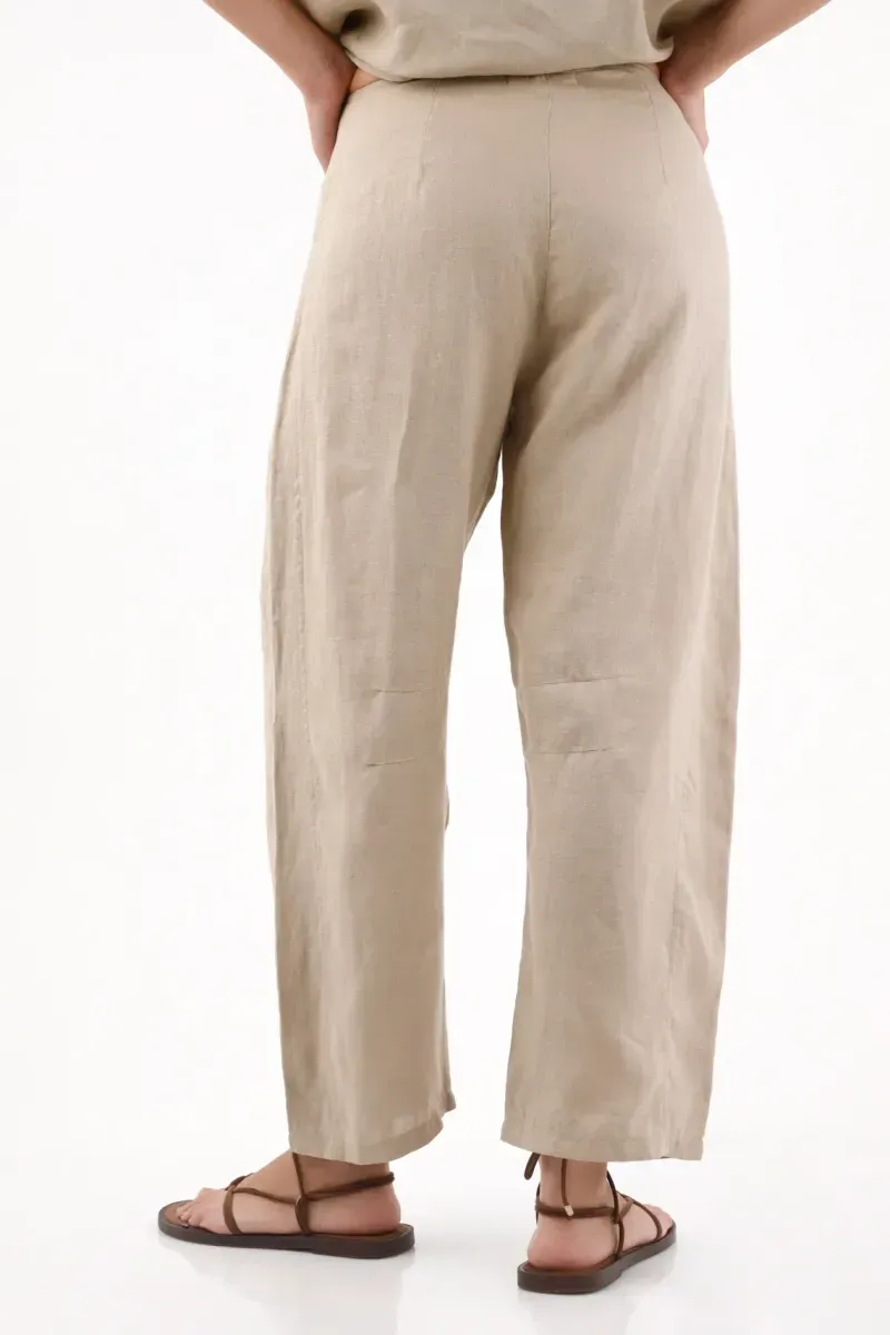 RopaMujerPantalonesPantalón mujer en lino arena pierna ancha minimalista