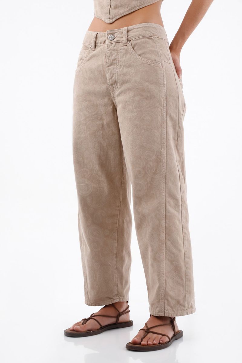 Este pantalón para mujer en algodón 100% abraza la ciudad con un estampado tono sobre tono que aporta textura sin saturar: se lee como un básico, pero tiene carácter. La pierna recta y amplia, con largo al tobillo y tiro medio-alto, te da libertad de movimiento y una caída relajada que estiliza sin apretar. La construcción tipo denim de cinco bolsillos suma practicidad y mantiene la forma durante el uso, mientras el color beige arena convive fácil con tu paleta diaria sin perder ese punto creativo.