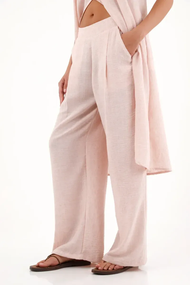 RopaMujerPantalonesPantalón Recto con pretina elástica rosado para mujer