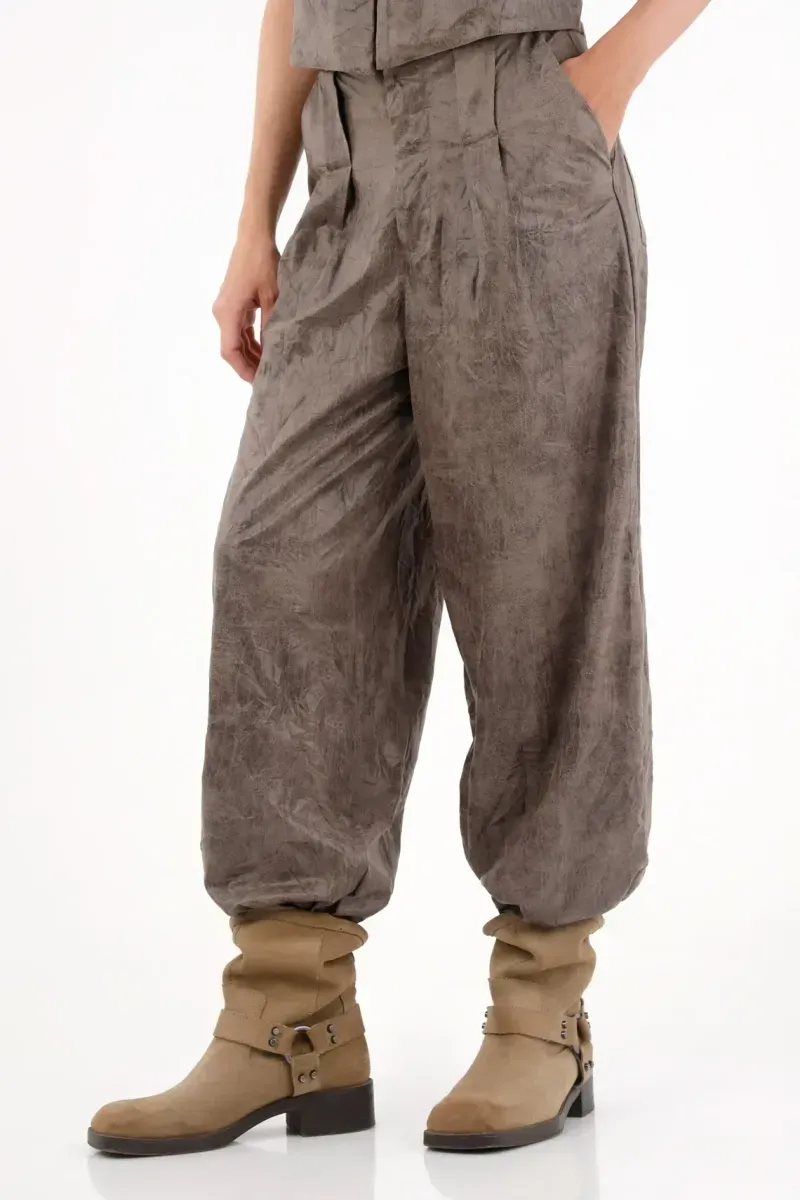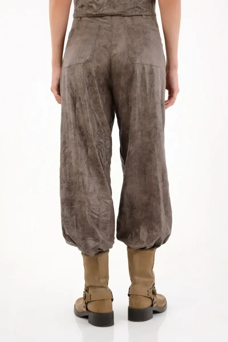 Pantalón tipo jogger de textura suave café para mujer