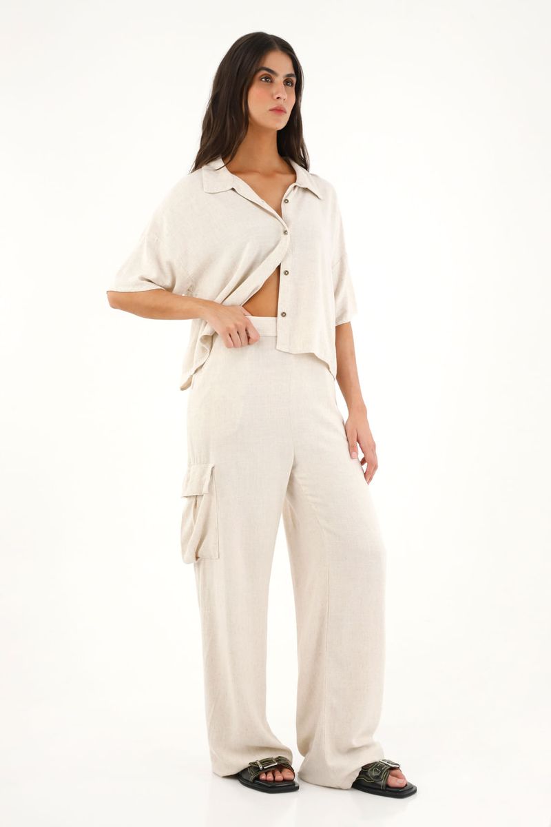 ¡Como cuando combinamos lo moderno con lo versátil! Este pantalón recto, con detalles funcionales y un toque contemporáneo, será tu aliado perfecto para cualquier plan.