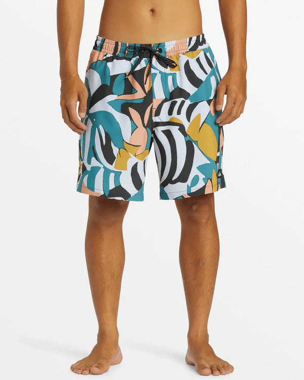Shorts Quiksilver Surfsilk Mix Volley 17 Nb con estampado gráfico de temporada para un estilo veraniego. Su tejido, similar al ante, no elástico, está hecho de poliéster 100 % reciclado, proveniente de los bordes de producción y residuos de fibra. Cuenta con un tratamiento repelente al agua ecológico y sin PFC. La cintura tiene un elástico sencillo y un cordón ajustable. Dos bolsillos laterales, bolsillo trasero con velcro y cordón elástico para llaves. Largo 17".
