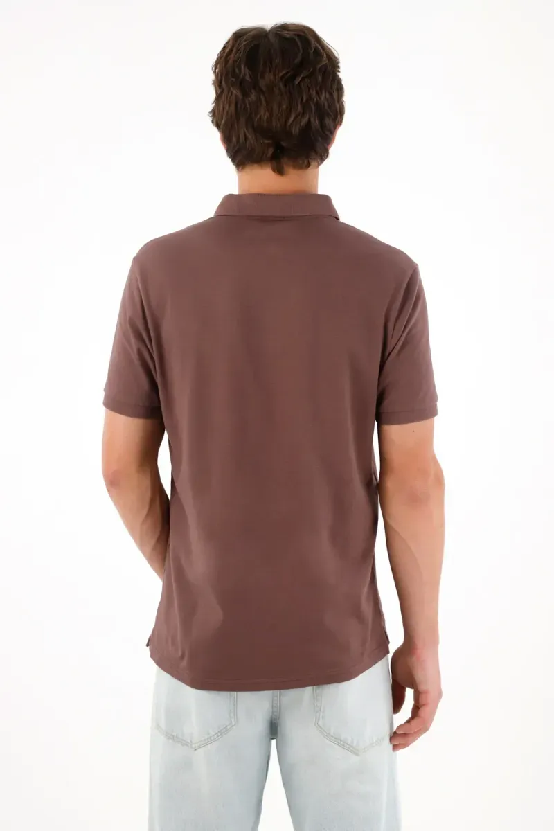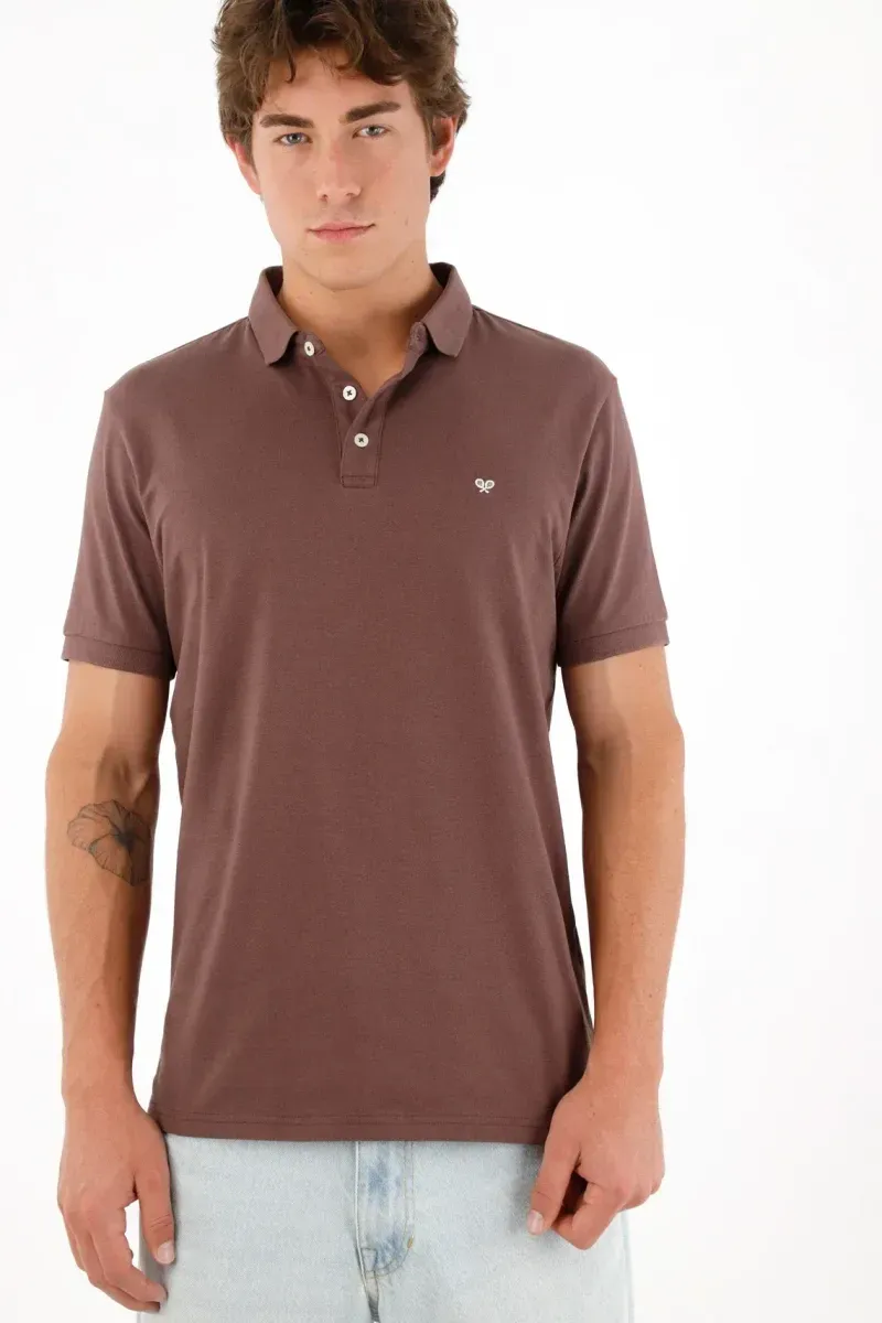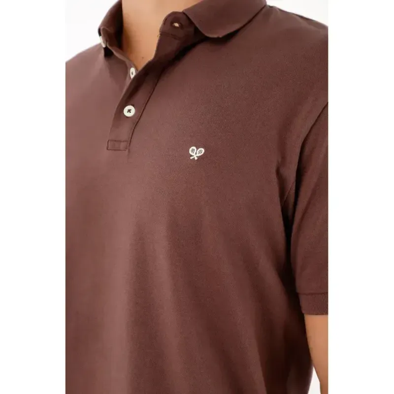 RopaHombreCamisetasPolo con mini raqueta café para hombre