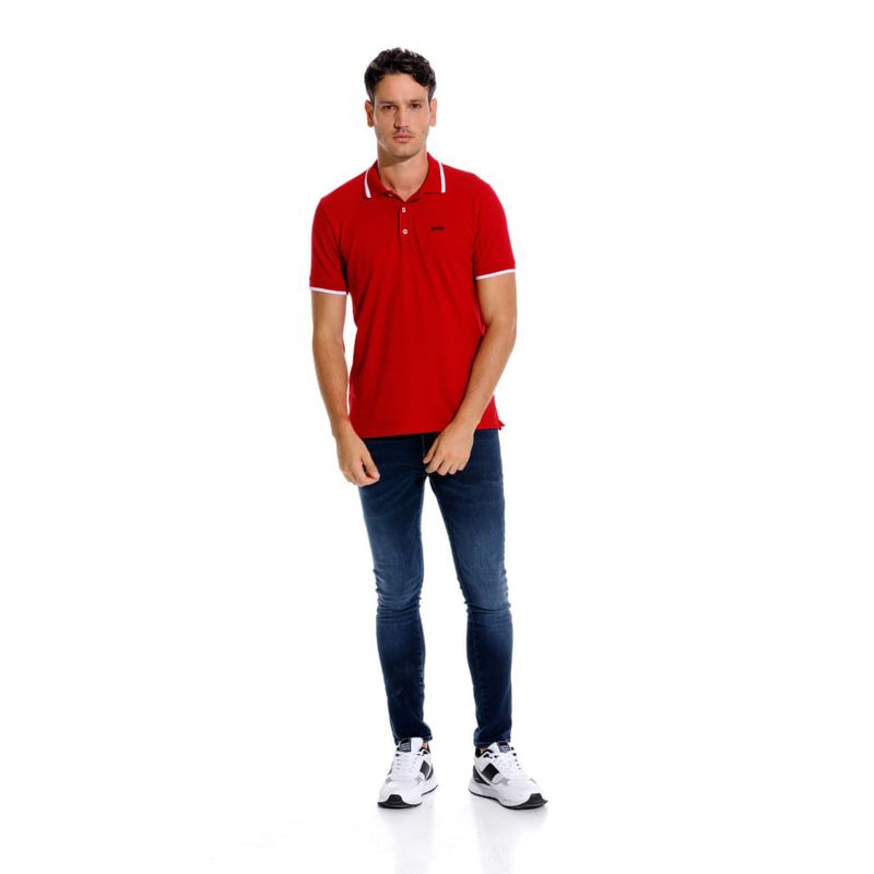Polo de botones contramarcados con cuello tejido y manga corta. Confeccionado en mezcla de algodón. Bordado delantero en punto corazón .