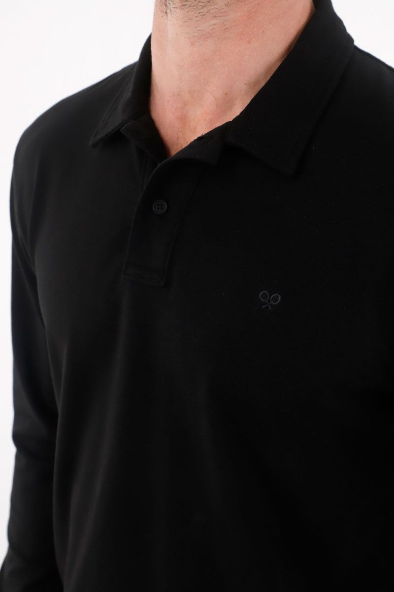 Polo manga larga negra para hombre