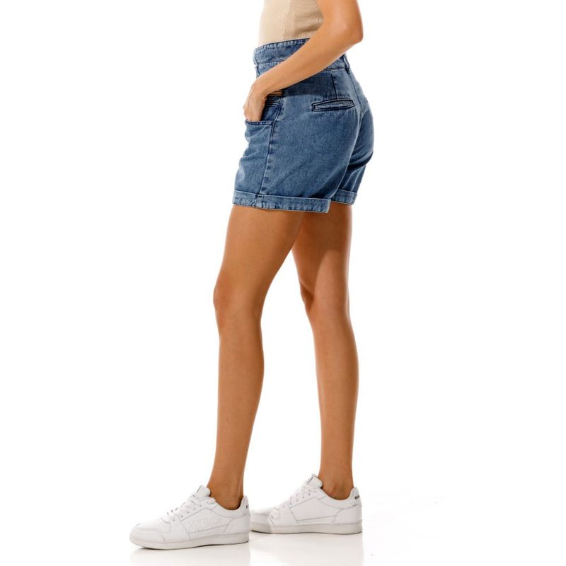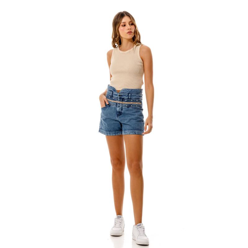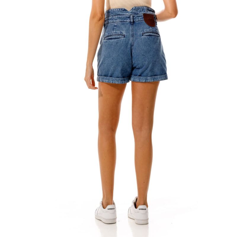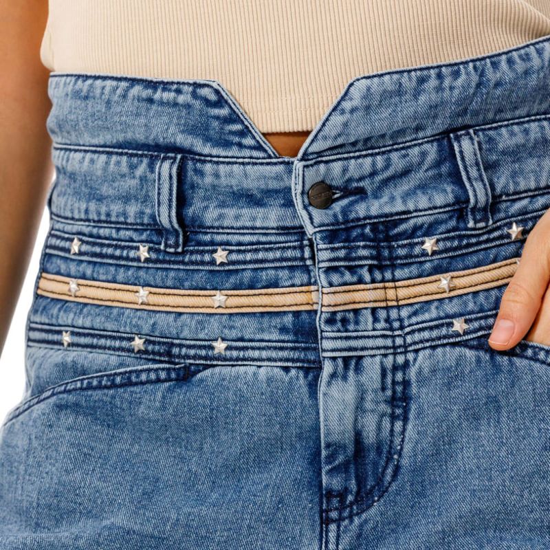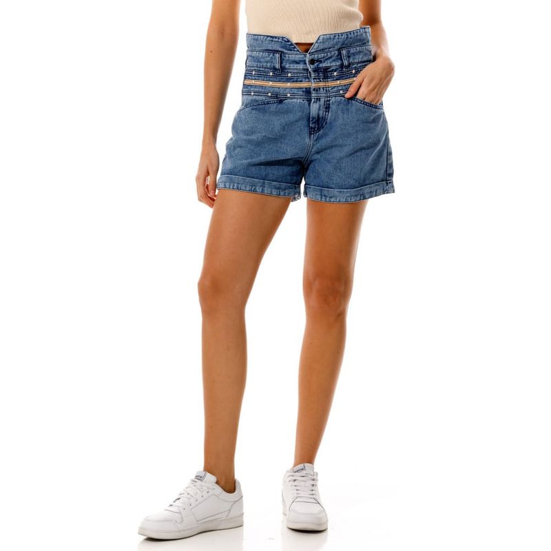 Bermuda en denim liviano con corte en pretina. Confeccionado en mezcla de algodón. Detalle en pretina con remaches en forma de estrella.