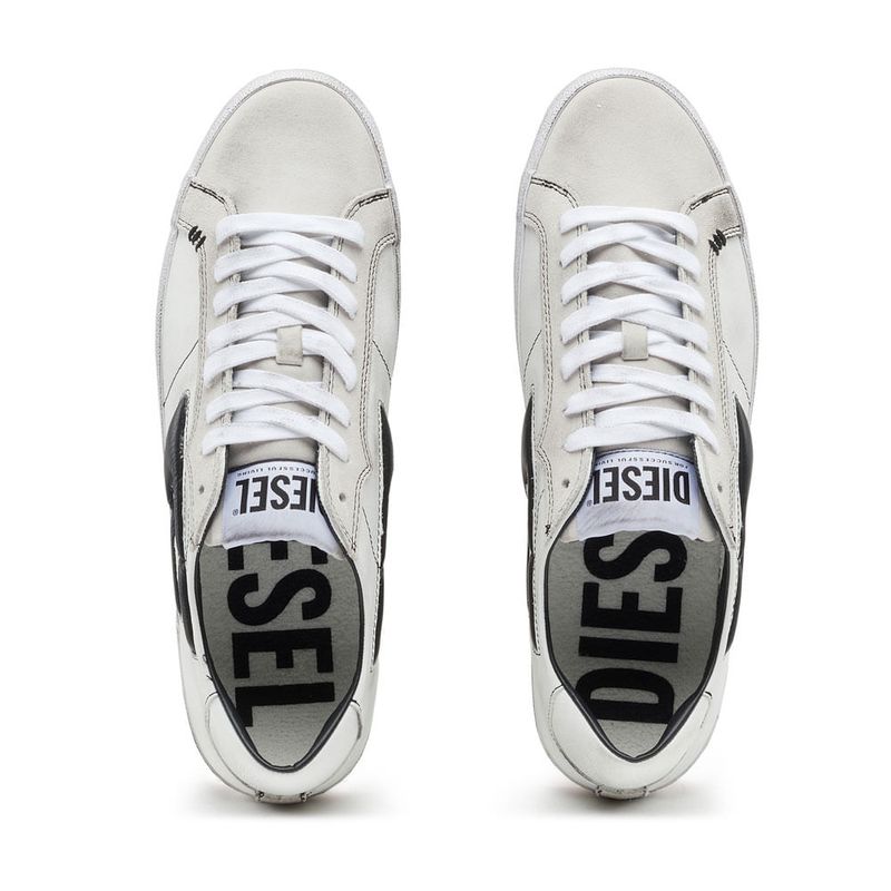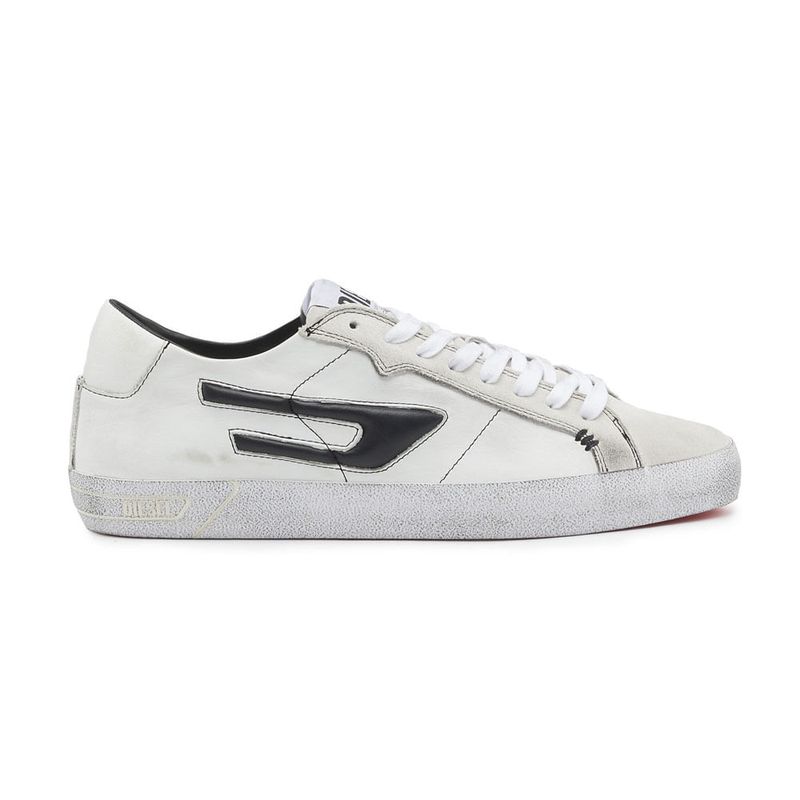 Diesel es una innovadora marca internacional de estilo de vida que produce una amplia colección de jeans, ropa y accesorios. Somos pioneros en denim y con el pasar de los años nos convertimos en una marca de ropa casual premium, siendo una verdadera alternativa en el mercado de lujo establecido. Somos una marca que representa la pasión, la individualidad y la autoexpresión. El Mundo DIESEL te espera. Deportiva baja de piel con paneles de gamuza a tono, que se acentúa con un logotipo D contrastante en relieve. Tanto la pala como la suela vulcanizada están tratadas con un acabado con efecto de suciedad para un aspecto usado. Detalle de triple costura en el refuerzo de los ojales. 100%Cuero Bovino País Origen: China
