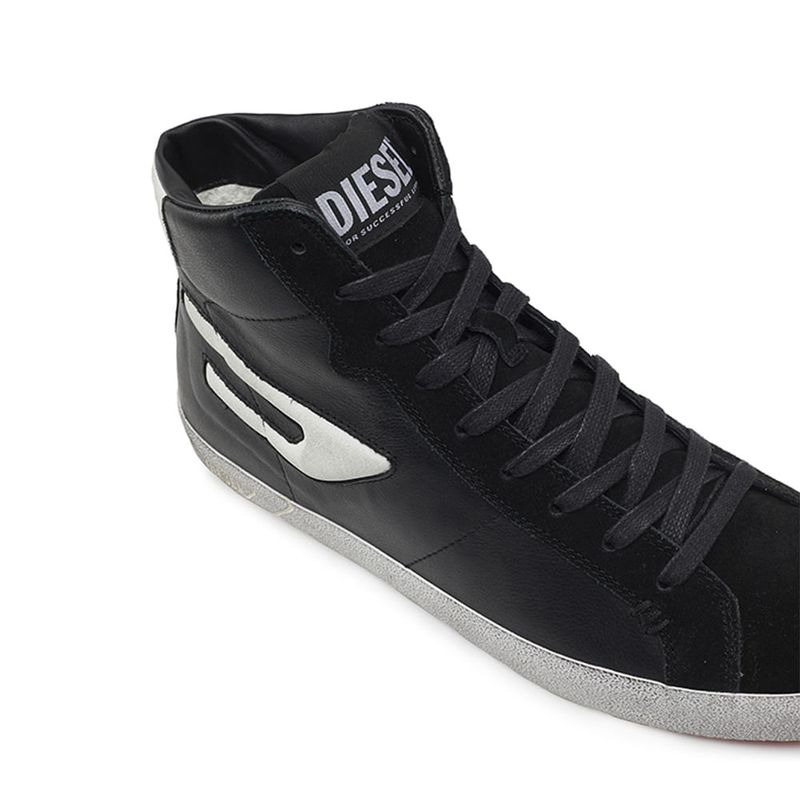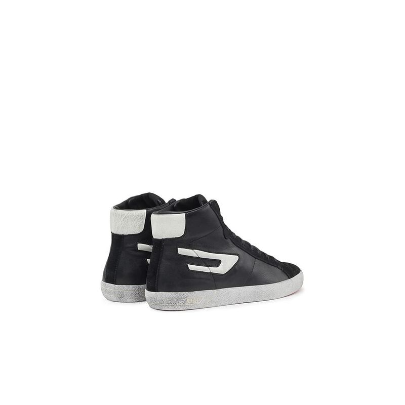 Diesel es una innovadora marca internacional de estilo de vida que produce una amplia colección de jeans, ropa y accesorios. Somos pioneros en denim y con el pasar de los años nos convertimos en una marca de ropa casual premium, siendo una verdadera alternativa en el mercado de lujo establecido. Somos una marca que representa la pasión, la individualidad y la autoexpresión. El Mundo DIESEL te espera. Esta deportiva alta de piel está actualizada con la marca D en relieve y adornos de gamuza a tono. Tanto la pala como la suela de goma vulcanizada presentan un tratamiento con efecto de suciedad para un aspecto usado. Presenta un detalle de triple costura en el refuerzo de los ojales. 100%Cuero Bovino País Origen: China