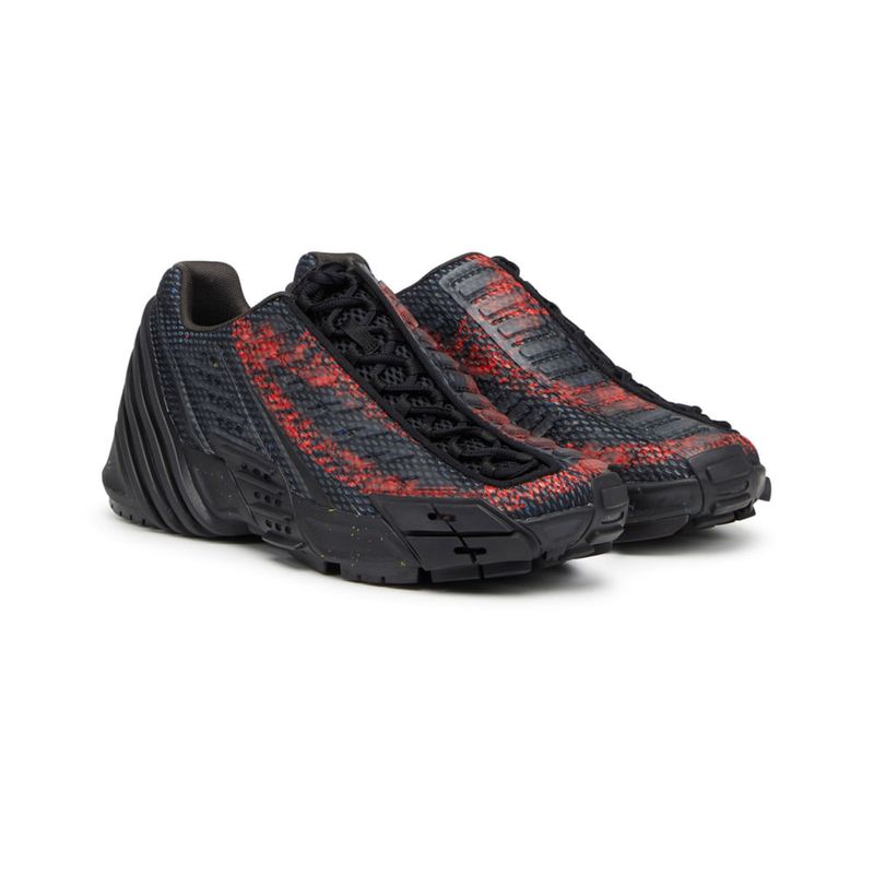 Confeccionada en malla moteada, esta zapatilla deportiva para hombre está revestida con goma moldeada transparente y opaca para conseguir una textura gruesa que se funde a la perfección con su suela industrial. Elevado con un cierre de cordones descentrado. • Composición: 69%Poliéster 27%Poliuretano 4%Goma • País Origen: Vietnam
