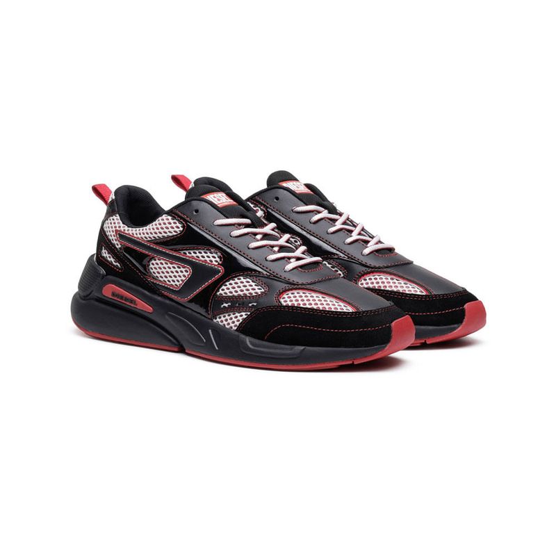 Diesel es una innovadora marca internacional de estilo de vida que produce una amplia colección de jeans, ropa y accesorios. Somos pioneros en denim y con el pasar de los años nos convertimos en una marca de ropa casual premium, siendo una verdadera alternativa en el mercado de lujo establecido. Somos una marca que representa la pasión, la individualidad y la autoexpresión. El Mundo DIESEL te espera. Zapatillas deportivas inspiradas en los estilos de los años 2000. Confeccionado en malla respirable bicolor, este calzado presenta capas superpuestas con charol y gamuza de estilo vintage, con la D de la marca y entresuelas acolchadas. 100%Poliéster País Origen: China
