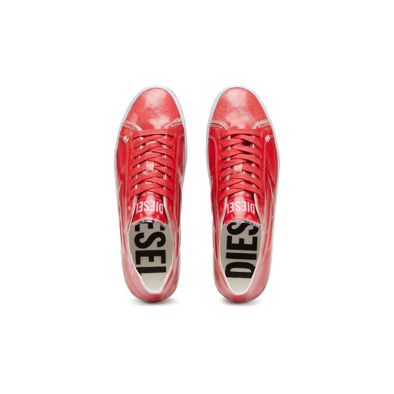 Zapatillas deportivas de caña baja para mujer fabricadas en lona lavada y envueltas en una superposición de TPU transparente que crea un acabado brillante y es visible a lo largo de los bordes. La parte superior se asienta sobre una suela de goma vulcanizada de efecto sucio, e incorpora la marca D en relieve en el lateral y un detalle de triple costura en la ojetera. Cierre de cordones
