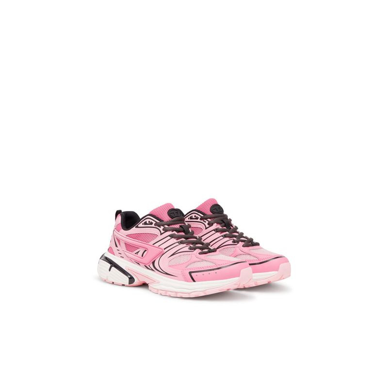 Tenis Para Mujer S-Serendipity Pro-X1 W Diesel. Estas deportivas están confeccionadas en malla con capas superpuestas de cuero en un colorido diseño degradé. Con una parte inferior extendida en contraste y estabilizador de poliuretano brillante para mayor comodidad, este modelo para mujer lleva un logotipo D lateral y un parche Oval D de goma. • Composición: 100%Poliéster • País Origen: Vietnam