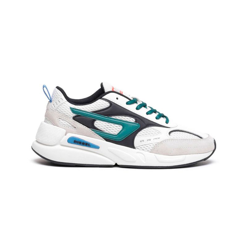 • Diesel es una innovadora marca internacional de estilo de vida que produce una amplia colección de jeans, ropa y accesorios. Somos pioneros en denim y con el pasar de los años nos convertimos en una marca de ropa casual premium, siendo una verdadera alternativa en el mercado de lujo establecido. •Somos una marca que representa la pasión, la individualidad y la autoexpresión. El Mundo DIESEL te espera. Deportivas de malla rematadas con capas superpuestas de gamuza acolchada metálica y vintage, apoyadas en una suela acolchada. Presentan un parche D lateral y una etiqueta Diesel For Successful Living prensada en caliente en la lengüeta. • 100%Poliéster País Origen: Vietnam