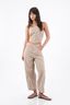 Top halter para mujer de algodón beige corto con tiras