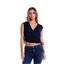 Top con cuello en V y manga sisa. Confeccionado en lino. Bordado en delantero.