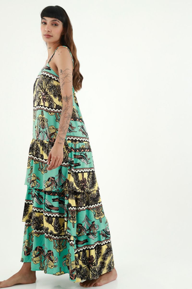 Vestido para mujer tennis, vestidos larga estampado orquídea y colibrí turquesa. color: verde. hecho en material total: viscosa 100%