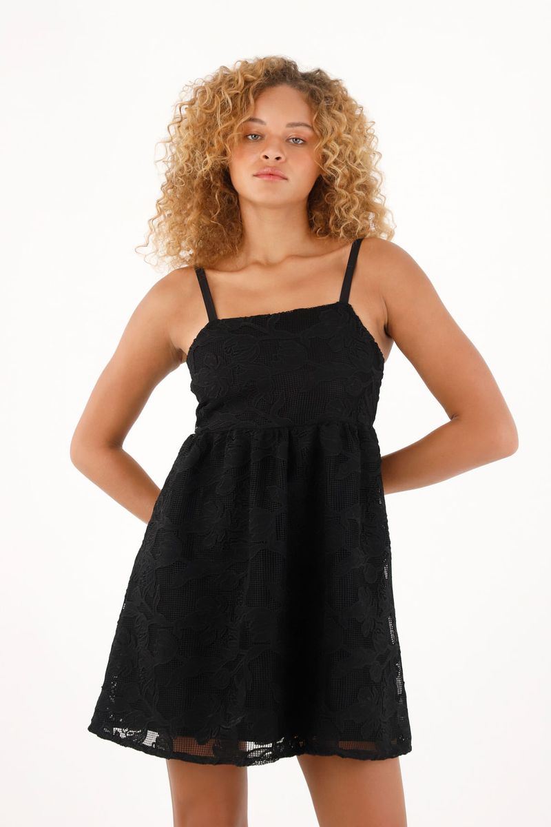 RopaMujerVestidosVestido negro corto en tela bordada para mujer